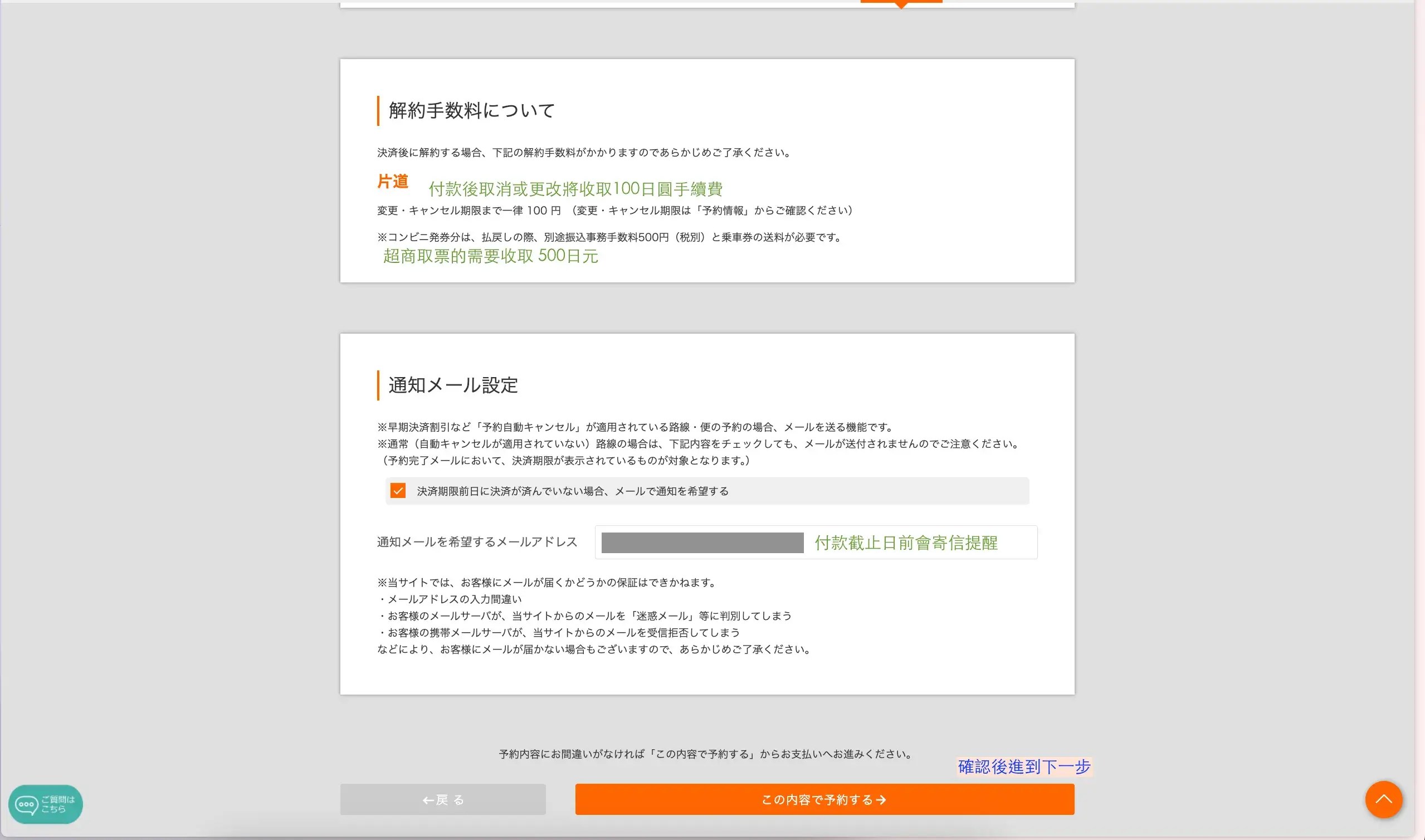 再來下方橘色按鈕,我建議選擇「片道預約(單程預約)」。