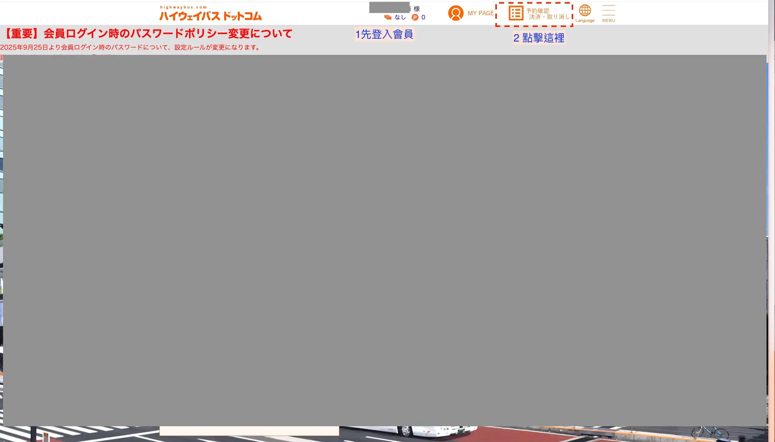 進到「日文版 Highway-bus 官網 」,點右上角紅框「會員登錄」