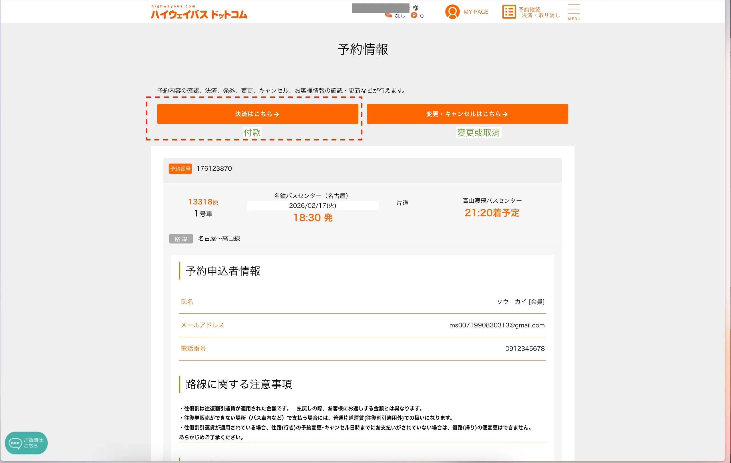 以上就是怎麼用日文 Highway Bus 預約名古屋到高山的高速巴士方法喔!