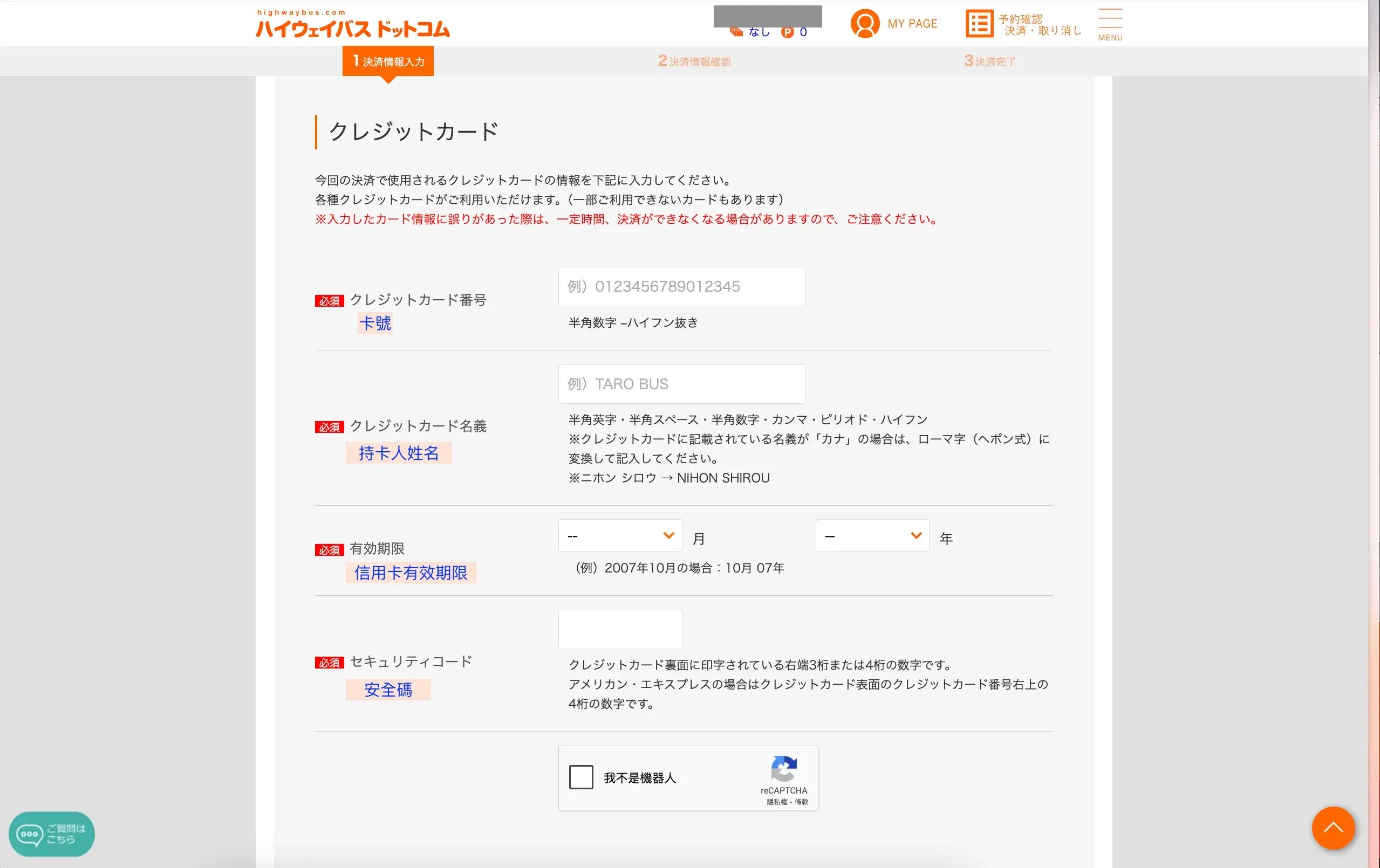 接下來就是最簡單的步驟啦,輸入卡號、姓名、到期日、安全碼。