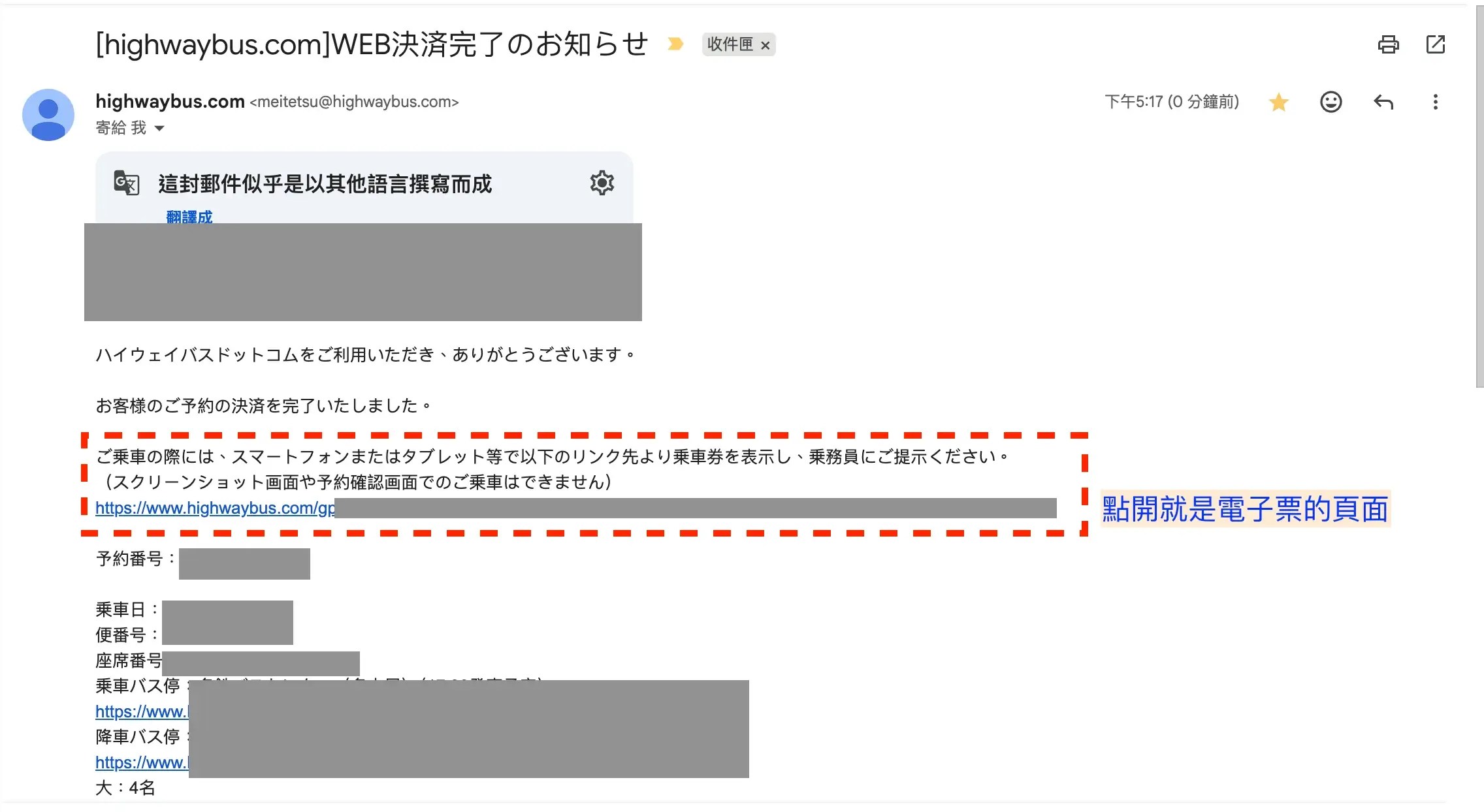首先 Email 會先收到「[highwaybus.com]支付完畢通知函」。