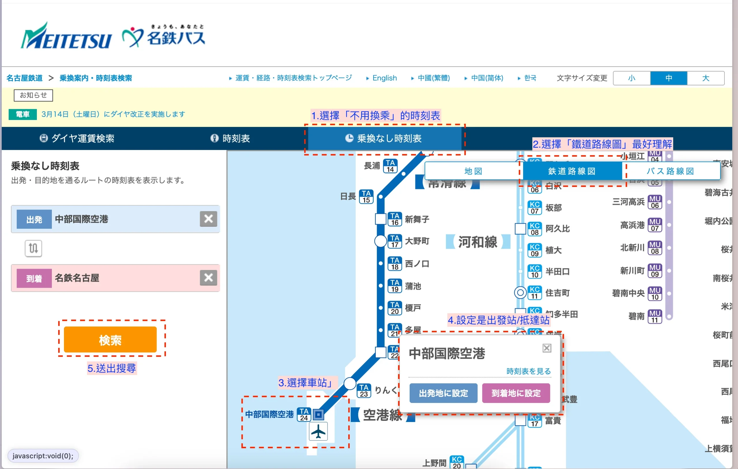 首先,進到名鐵乗換案内・時刻表検索|名古屋鉄道。